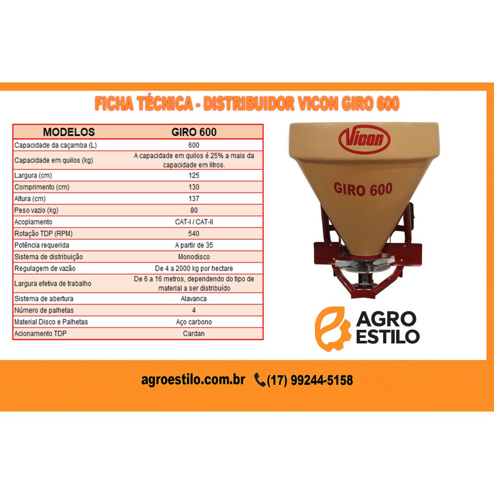 Adubadeira Vicon Giro 600 Área Total | Agro Estilo