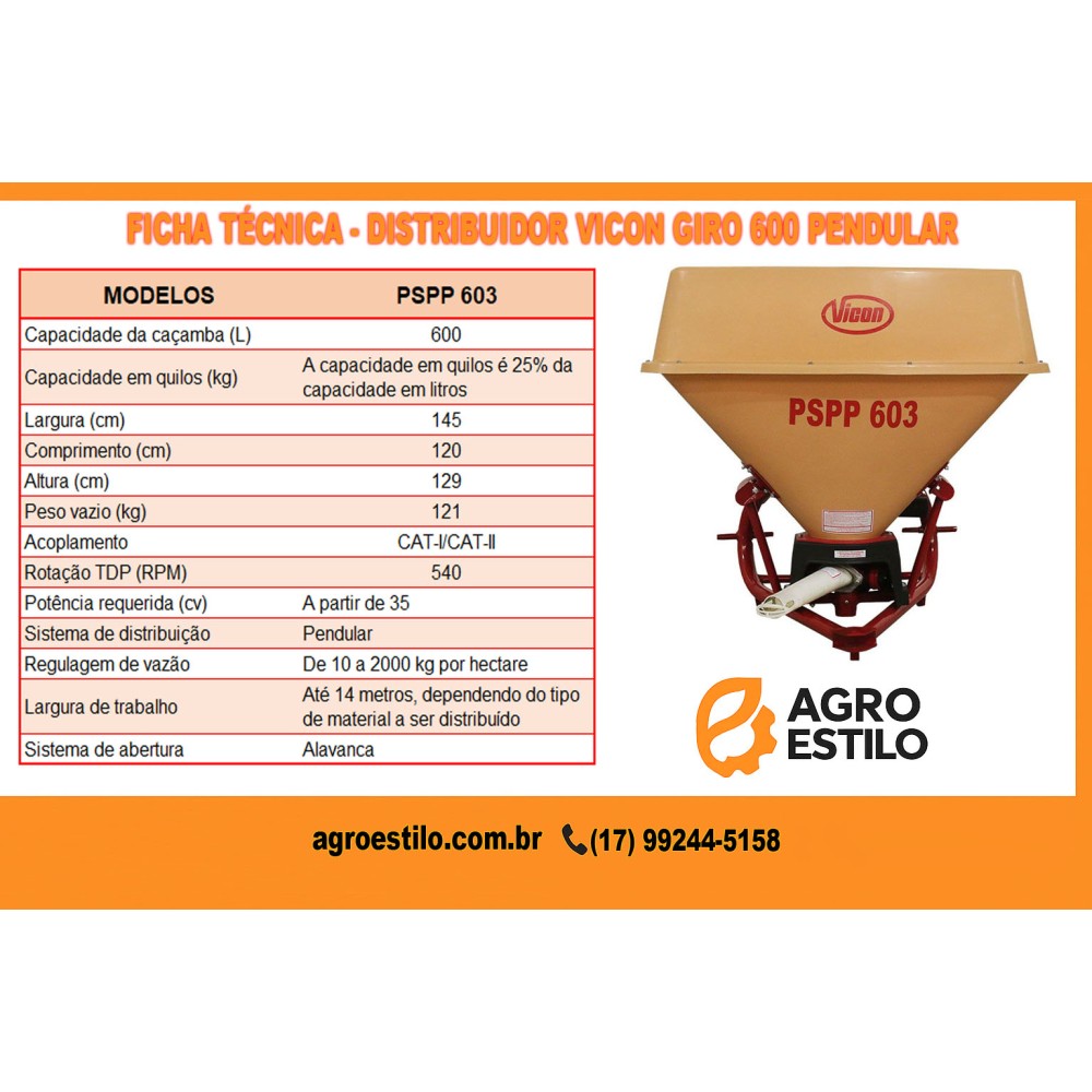 ???? Por que escolher o Distribuidor Vicon Pendular 600 kgs?