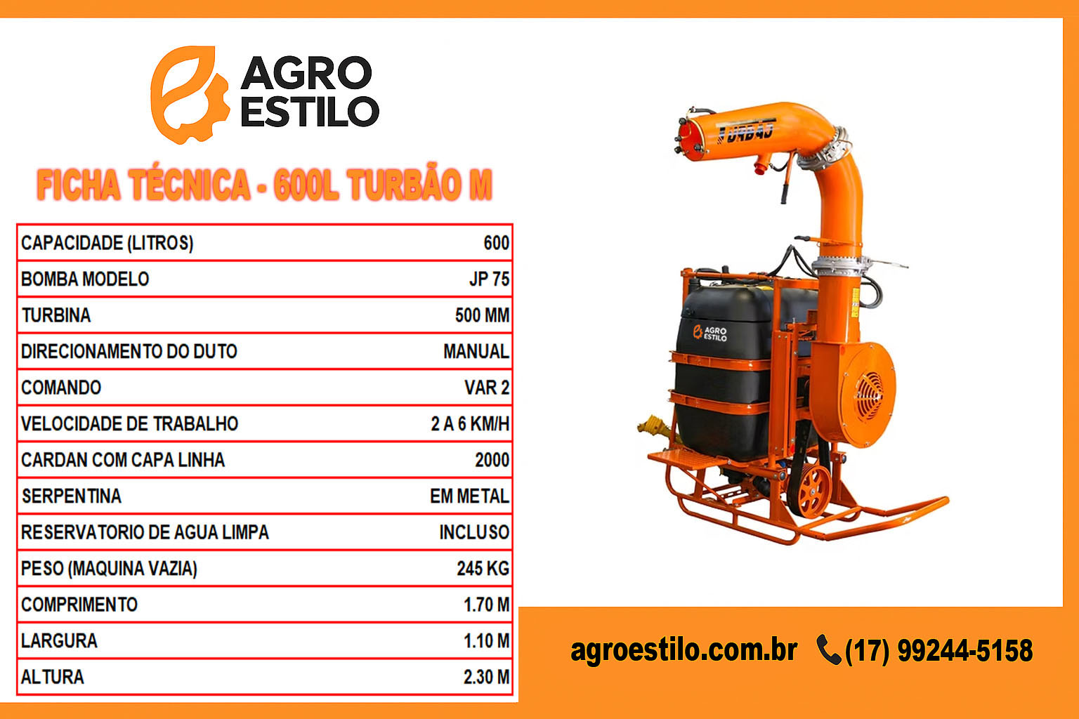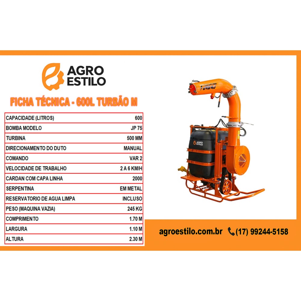 ATOMIZADOR TURBÃO 600 LITROS MANUAL - AGRO ESTILO