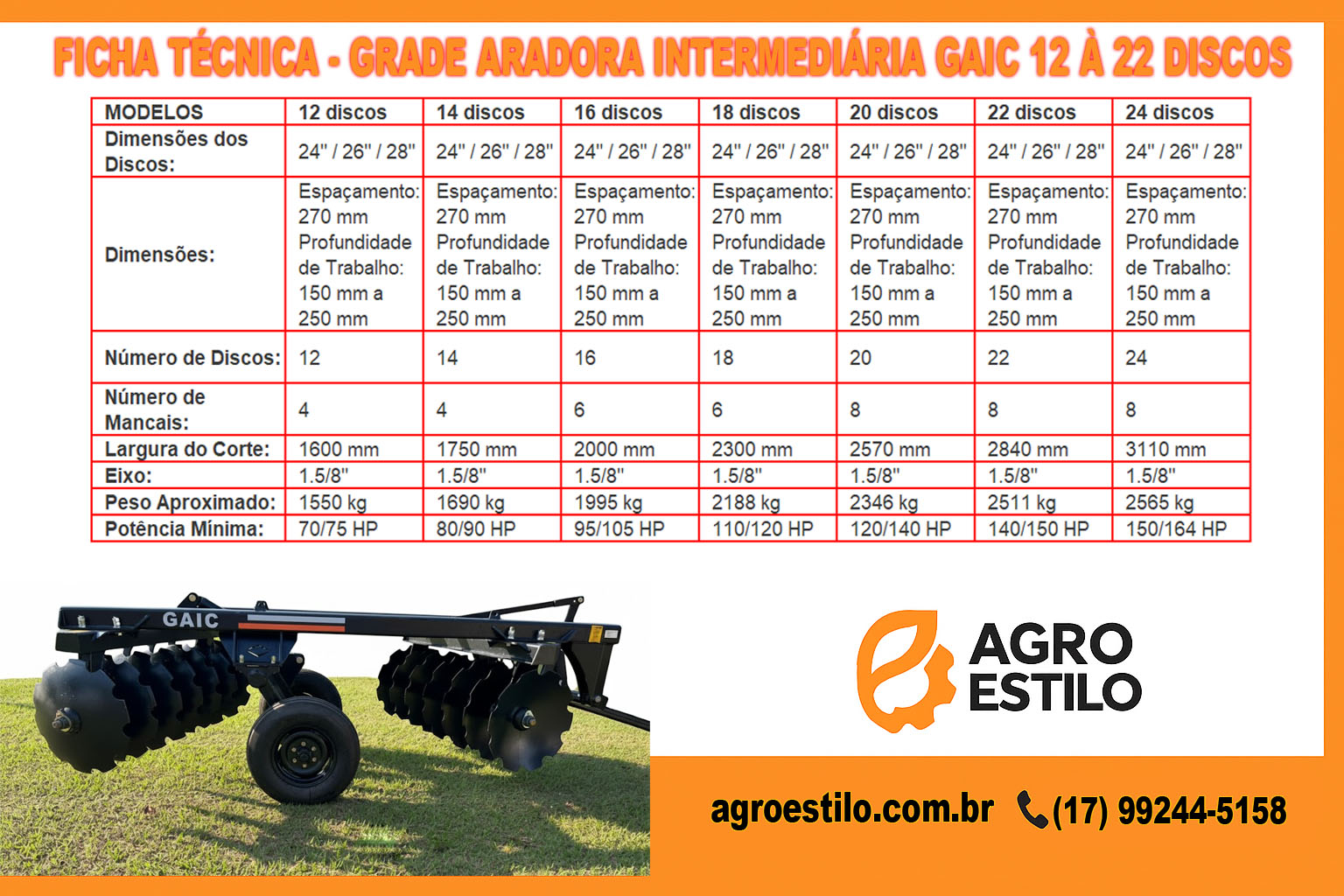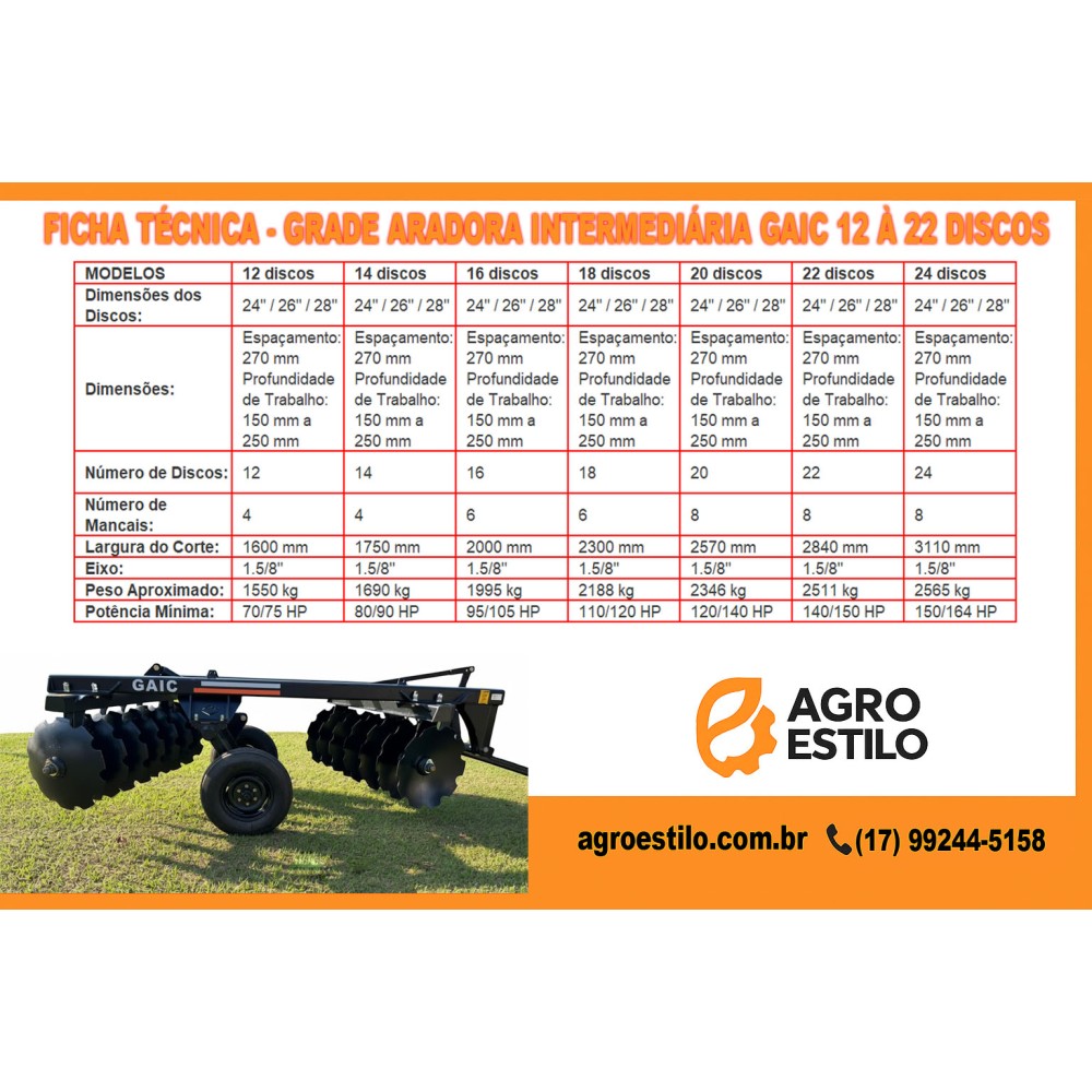 Especificações Técnicas – Grade de Arrasto 14 Discos Agro Estilo