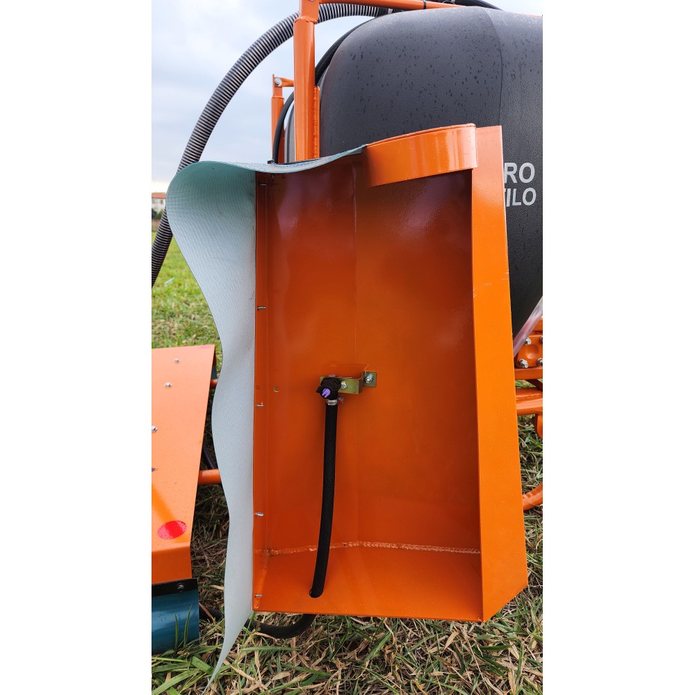 A barra protegida anti-deriva assegura pulverização precisa e segura, com barra central de 1,45 m de faixa de aplicação e barras laterais de 45 cm com molas, oferecendo melhor cobertura e uniformidade na aplicação de defensivos agrícolas.
