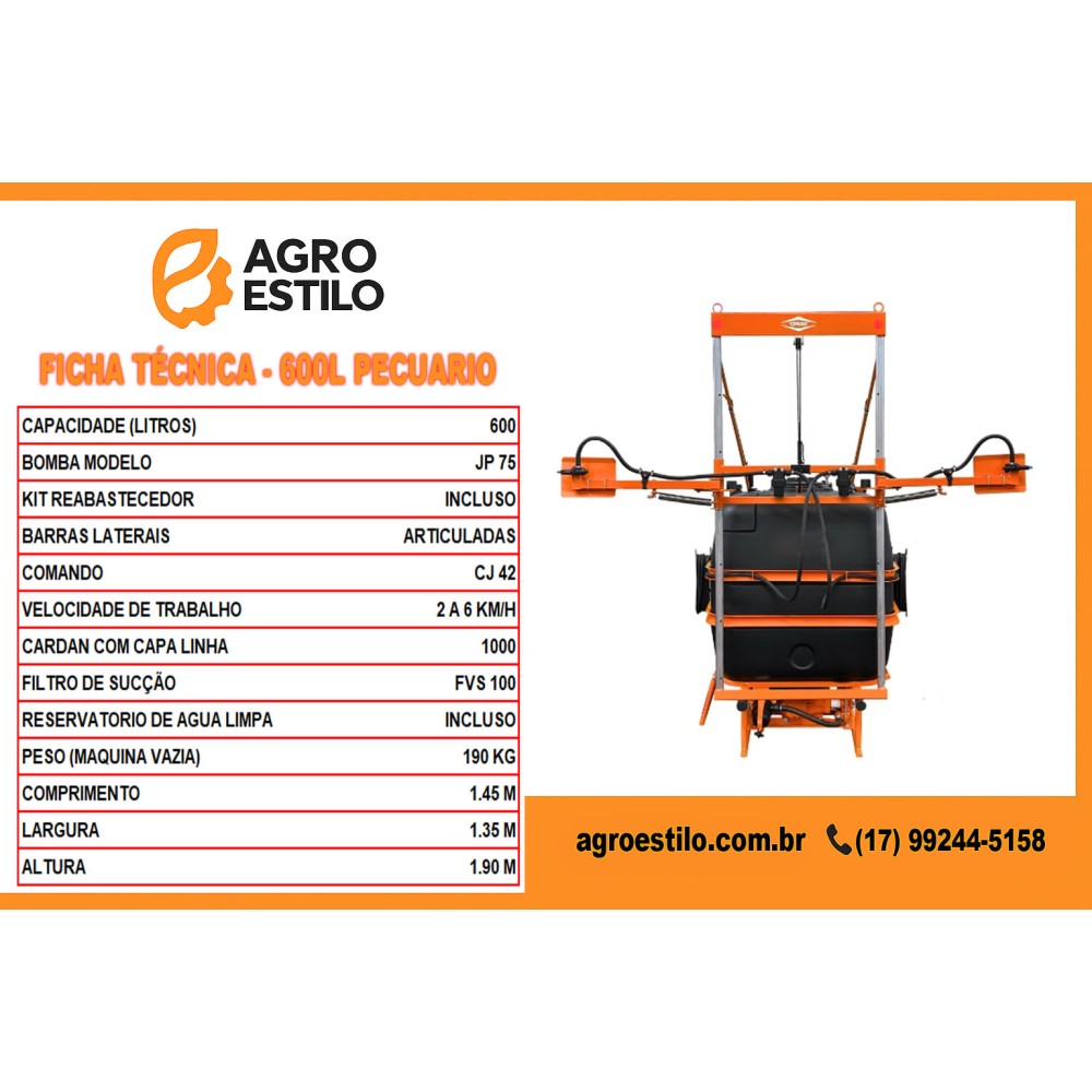 PULVERIZADOR PEC 600 LITROS PECUARIO - AGRO ESTILO