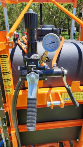 O pulverizador possui tanque de 600 litros, fabricado em polietileno de alta densidade, material conhecido por sua elevada resistência química e mecânica. Esse tanque garante maior durabilidade e segurança no manuseio de defensivos agrícolas, reduzindo custos de manutenção e evitando corrosão.