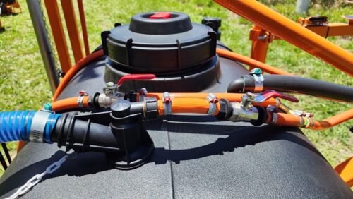 O kit agitador de calda incluso mantém a homogeneidade da mistura, assegurando que o produto aplicado tenha sempre a mesma concentração. O kit reabastecedor completo proporciona praticidade e agilidade durante o preparo da calda, otimizando o tempo de operação no campo.