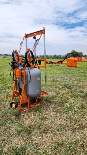 O equipamento possui cardan linha 1000 com capa protetora, kit reabastecedor, filtro de sucção e filtro de linha, além de 2 kits de pistola de catação para serviços complementares. A barra com regulagem de altura manual permite ajustar facilmente a distância de pulverização conforme a necessidade do terreno.